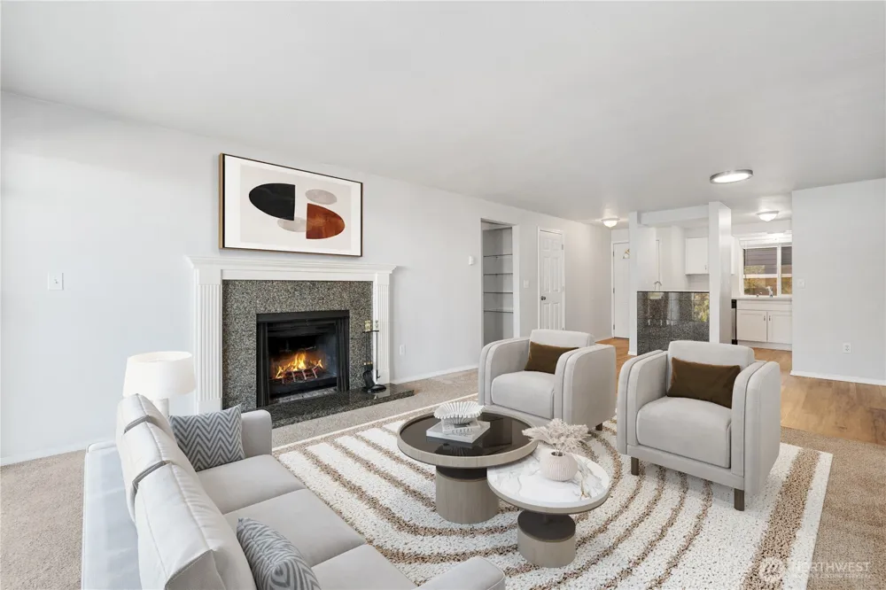 Discover easy living in this beautifully updated 2-bed, 1-bath condo in desirable North Tacoma with stunning views of Commencement Bay. This light-filled ground-floor unit features a fully remodeled kitchen with modern finishes, newer flooring, & in unit washer & dryer. Cozy up by the wood-burning fireplace or savor Commencement Bay views from the bedroom and private patio. Well-managed HOA with no rent cap, no special assessments, & VA approval makes this a standout opportunity—ready for its next owner. All appliances and a 1 year home warranty included! Ideally situated near parks, dining, waterfront attractions - a prime location. Mortgage savings may be available for buyers of this listing.
