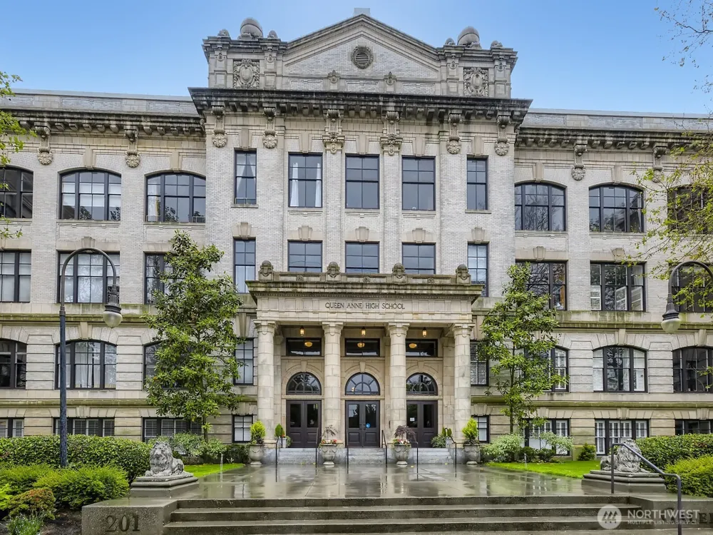 Live in a true Seattle landmark at the crest of Queen Anne Hill, where turn-of-the-century craftsmanship meets modern comfort. This rare, level-entry ground-floor corner home offers effortless accessibility, abundant natural light through oversized picture windows, and an open, flexible floor plan. Step out to your own private patio and enjoy the calming sounds of the courtyard fountain—an ideal retreat in the heart of the city. The one-bedroom residence features a large living space with enough room for a home office, hardwood floors, custom California Closets, in-unit washer/dryer hookups, and covered level access to secure dedicated garage parking. The kitchen is both stylish and functional with stainless steel appliances, granite countertops, a farmhouse sink, and generous storage. Secure garage parking, pet-friendly living, bike storage, and no rental cap add exceptional value. Entertain on the iconic rooftop deck with sweeping city, mountain, and water views, or stroll just blocks to Queen Anne’s vibrant shops, dining, and neighborhood amenities. A rare opportunity to own an accessible home in one of Seattle’s most storied buildings.